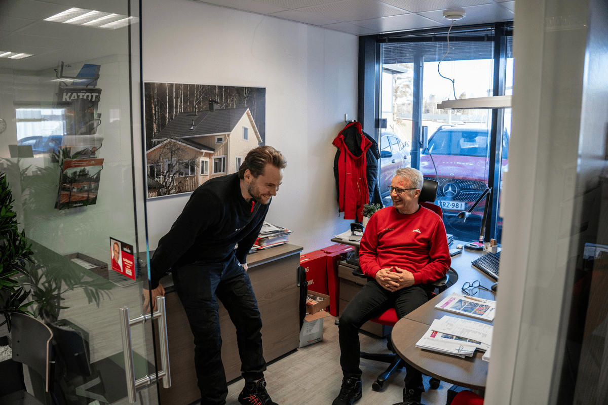 Alkuaikoina myös esihenkilö Markus Halmeen soitto ja kysymys “Mitä kuuluu?” jäi mieleen. Monessa paikassa tuollaisen kysymyksen taustalla saattaa olla jokin muu asia, mutta Kattokeskuksella kyse oli aidosta välittämisestä ja siitä, että uusi työntekijä pääsee varmasti hyvin alkuun. ”Markuksen kanssa on muutenkin ollut jouhevaa työskennellä.”